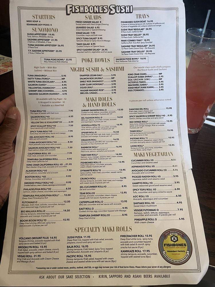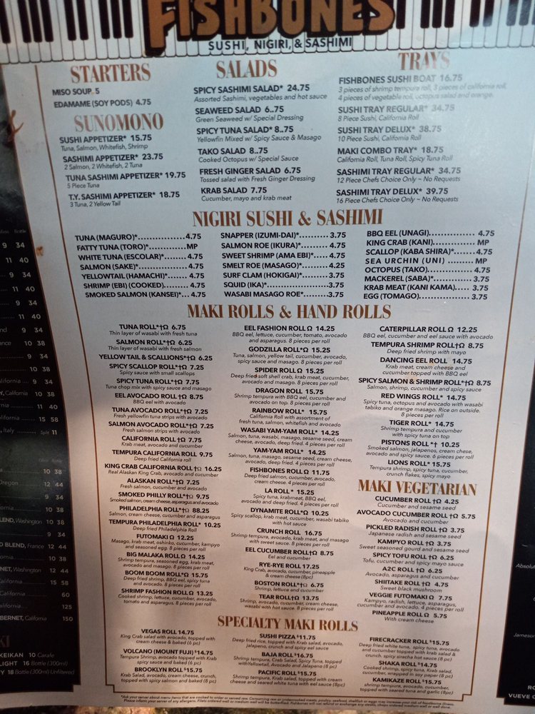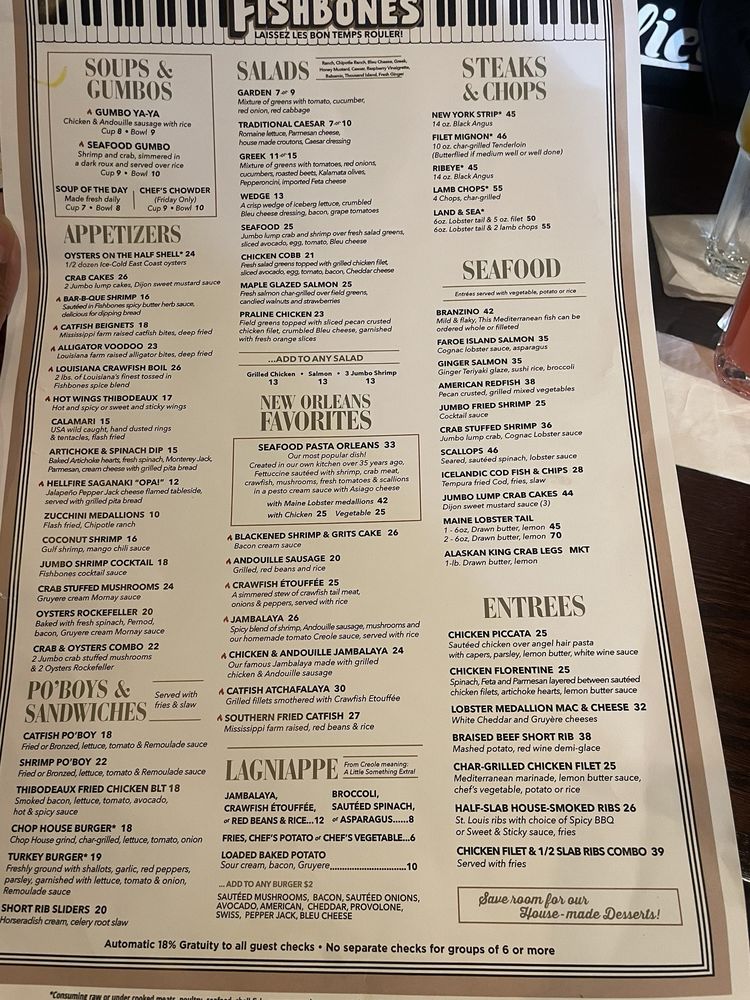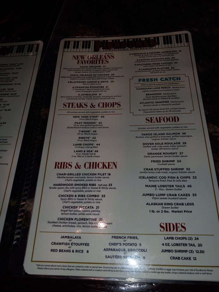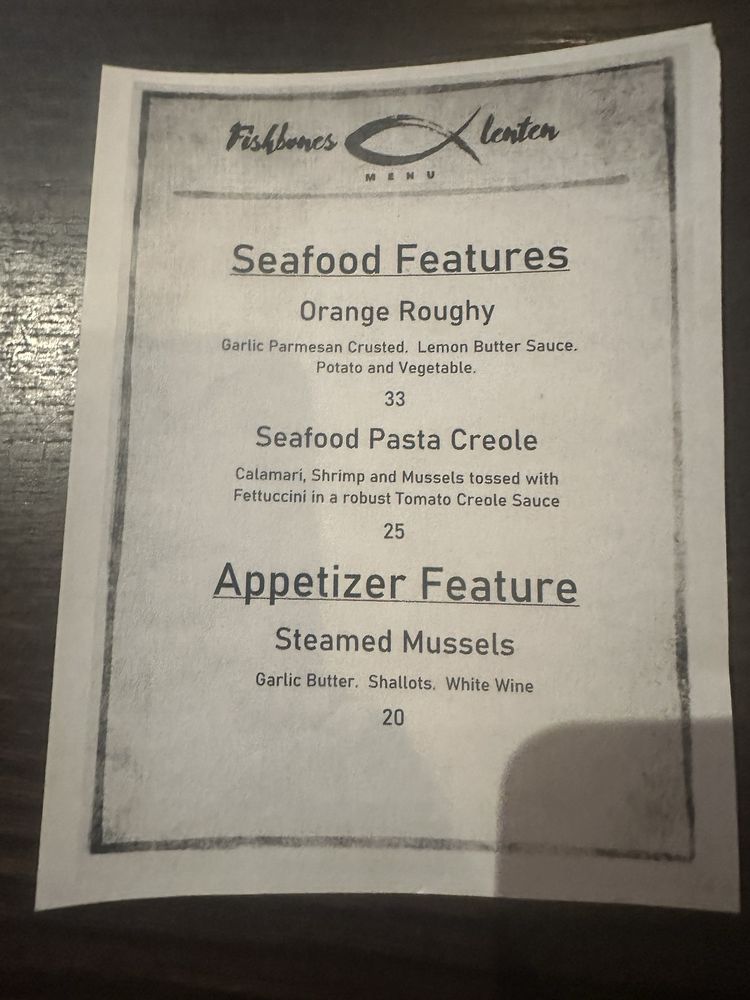 Fishbones Menu (2025 Update)